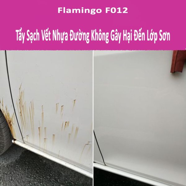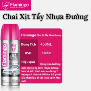 • Bình xịt tẩy nhựa đường, băng keo Flamingo F012 450ml chuyên làm sạch các loại keo, nhựa đường, dầu mỡ và các chất khó tẩy khác dính trên bề mặt. Có thể tẩy các vết keo của keo xịt đa năng 3M super 77, 3M 90