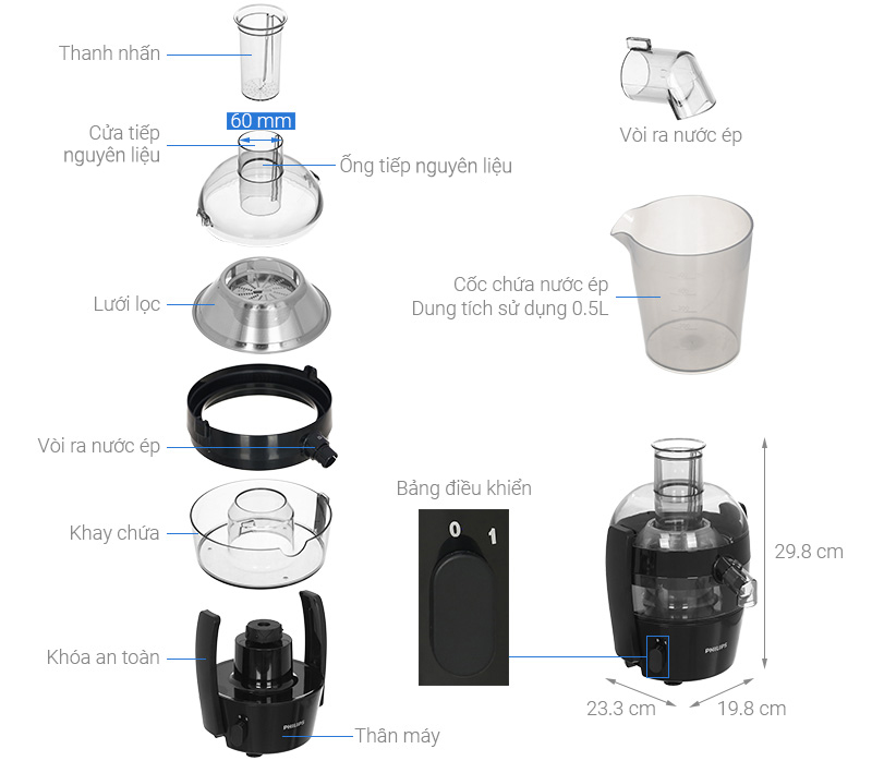 Máy Ép Trái Cây HR1832/00 Chính Hãng Philips