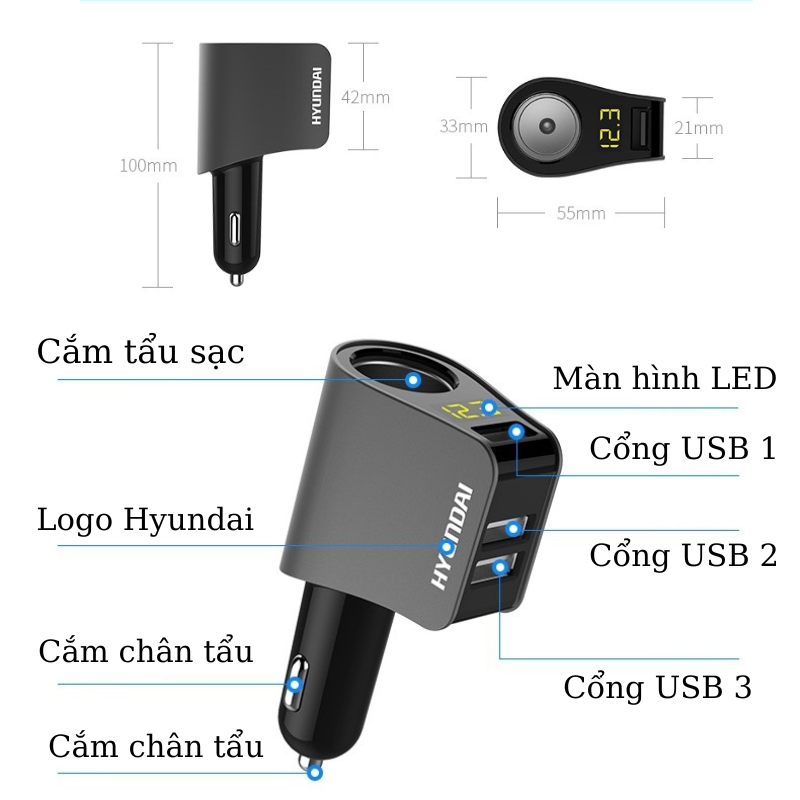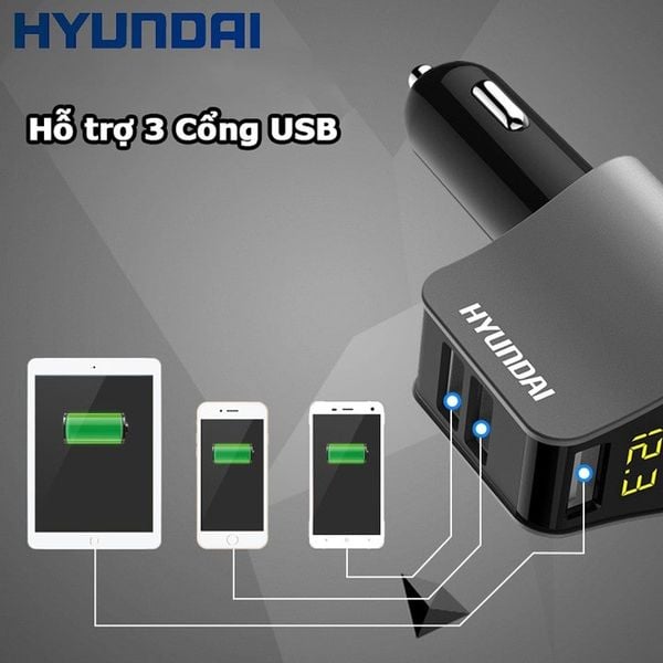 Tẩu Sạc Nhanh Ô Tô Huyndai 3 Cổng HY-10 Chính Hãng