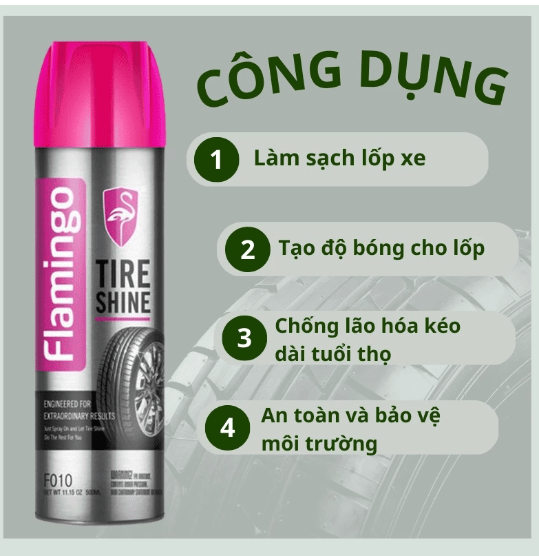 Đặt mua Xịt Dưỡng Bóng Flamingo F010 Phục Hồi Và Làm Sáng Lốp Xe Ô Tô